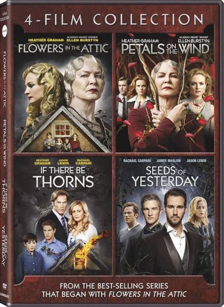 The "Flowers in the Attic" film series is a collection of four films based on the novel of the same name by V. C. Andrews. The films tell the story of four siblings who are locked in the attic of their wealthy grandmother's house after their father's death. The children are subjected to physical and emotional abuse by their grandmother, and they eventually die from neglect and starvation.